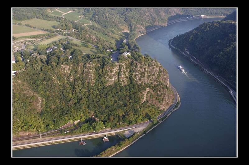 Luftbild der Loreley, des berühmte Rheinfelsens bei Sankt-Goarshausen, Bestand 38 Fotos.